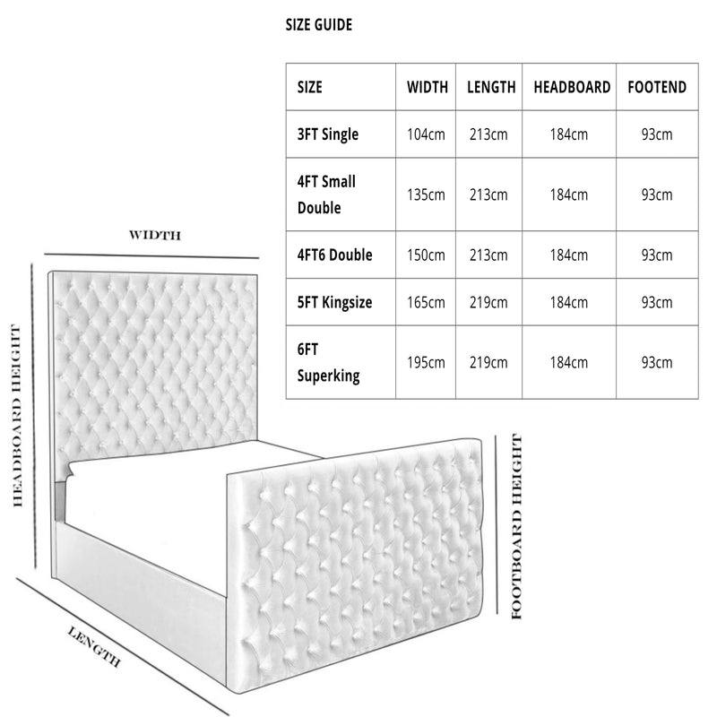 The tall chesterfield foot end on the Knightsbridge is as equally awe inspiring & the solid re-inforced side rails ensures this bed frame is built to last.