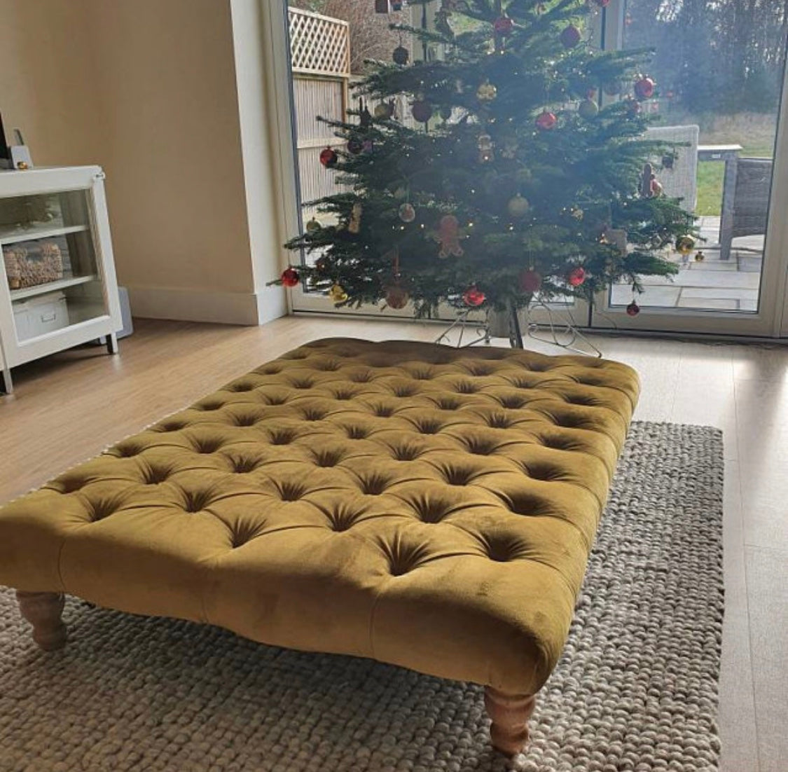 Large Chesterfield Upholstered Footstool / Coffee Table