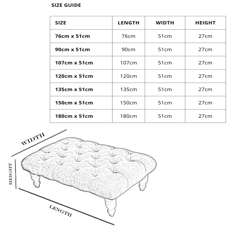 The Ashford footstool/coffee table incorporates the timeless deep buttoned chesterfield design with its rich upholstery and sumptuously padded sides which enhances the aesthetics on this opulent hand made piece of furniture.