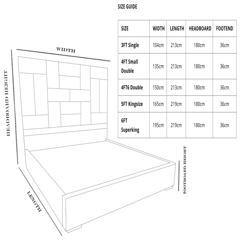 The Belgravia bed frames ultra luxurious & contemporary design headboard features individually upholstered geometric panels. This on-trend appearance is enhanced by its extra tall headboard & the mixed combination of rectangular panels form a stunningly smart & stylish bed frame.