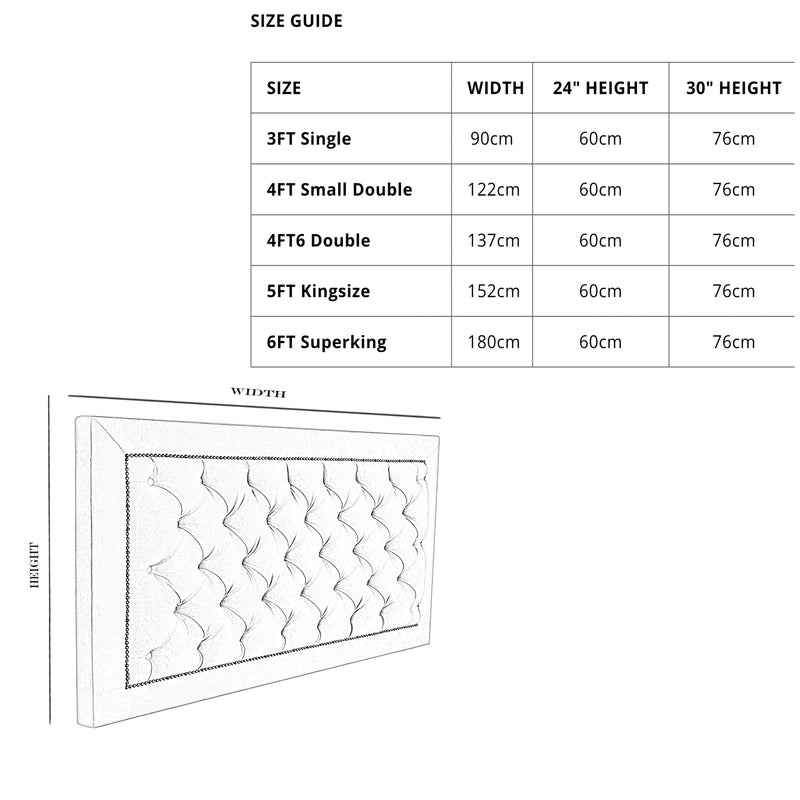 Completing the lavish appearance of this headboard, a sophisticated matching fabric trim border is used around the sides of the headboard which transforms the overall look and gives the headboards a premium luxurious finish.