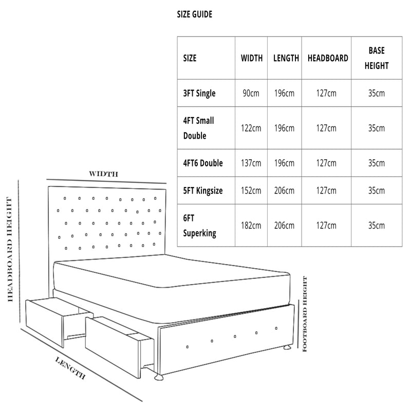 The in demand bed base features our luxurious chesterfield floor standing headboard which is sumptuously padded for aesthetics & comfort. Enhancing and improving the looks of this traditional bed base, a stylish buttoned foot panel is incorporated into the foot of the base to complete the overall look on this magnificent divan bed.