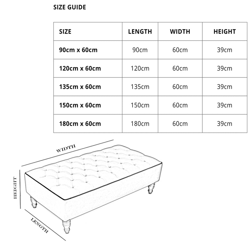 This stunning footstool incorporates the traditional deep buttoned chesterfield design. The footstool features a luxurious chesterfield padded top separated by a elegant piping trim border and sumptuously padded sides.