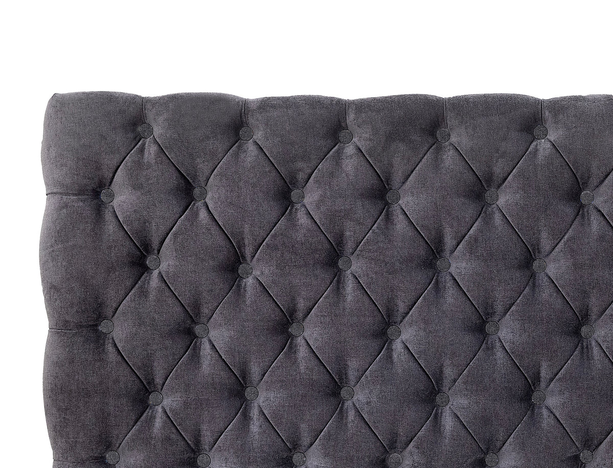 The Glamour headboard in the image is upholstered in our Slate Grey Soft Velvet.