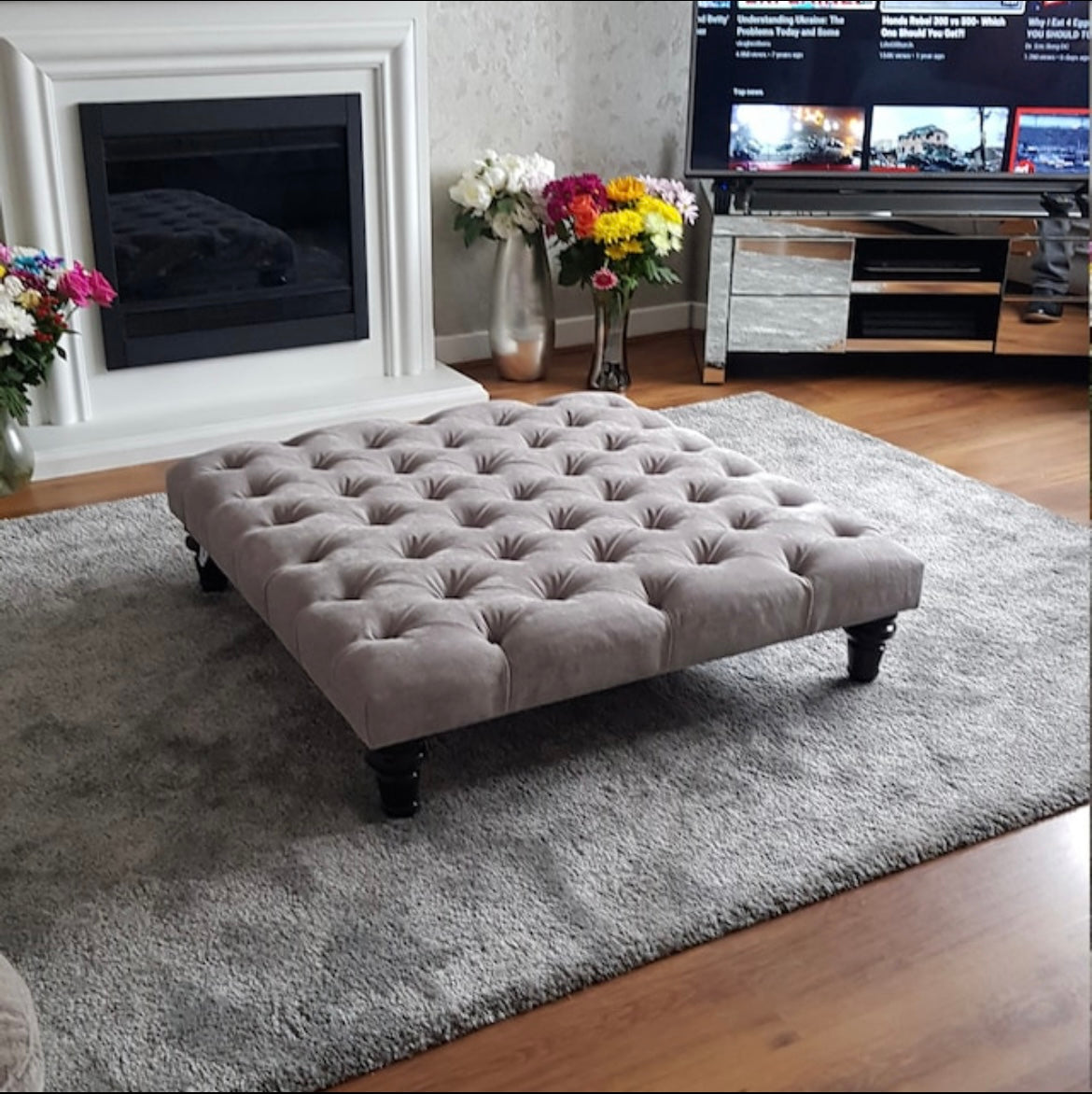 The Hampton footstool/coffee table incorporates the timeless deep buttoned chesterfield design. This hand made piece of furniture is ideal to use as a footstool or coffee table and would also suit most homes as it can be upholstered in over 60 various colours and fabrics.