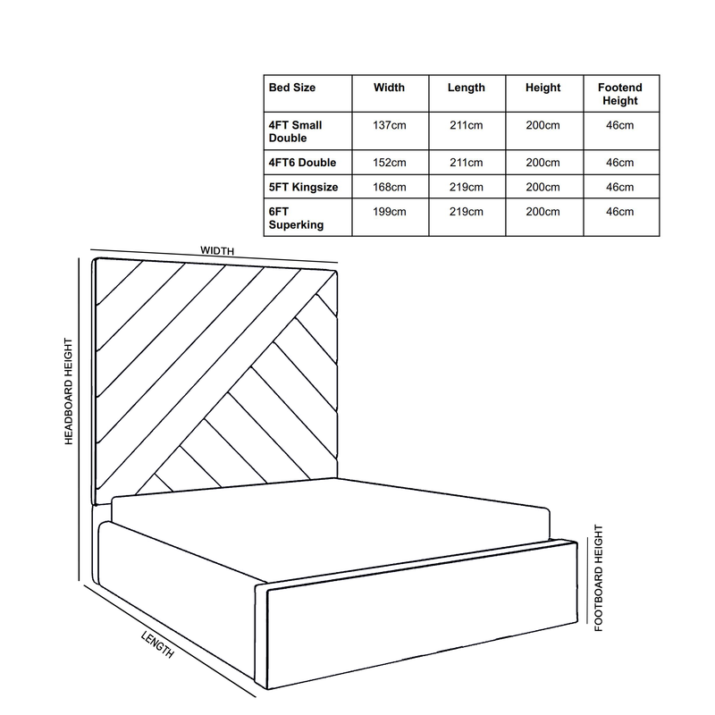 The bold diagonal multi panels are individually upholstered to create a sumptuous and eye catching luxury bed frame. The method and process behind upholstering each panel individually provides a premium and luxurious finish and the solid re-enforced side rails ensures the Delano bed frame is built to last.