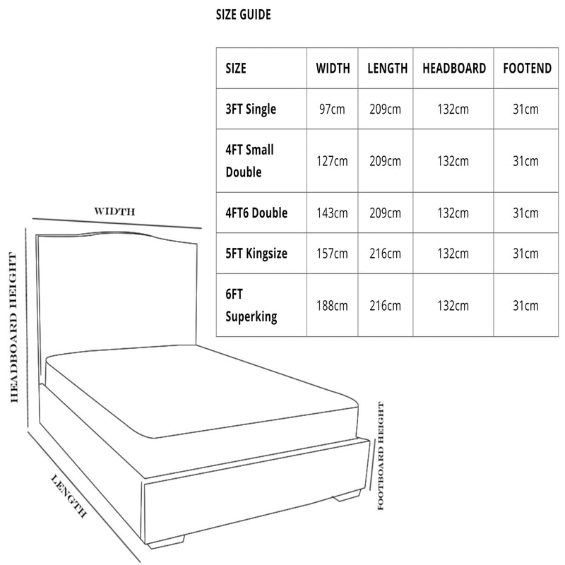 The Regal bed frames simplistic style and aesthetics would suit most bedrooms. The gentle curve along with the elegant piping trim border around the sides of the headboard and foot end adds a touch of class and sophistication to this on-trend bed frame.