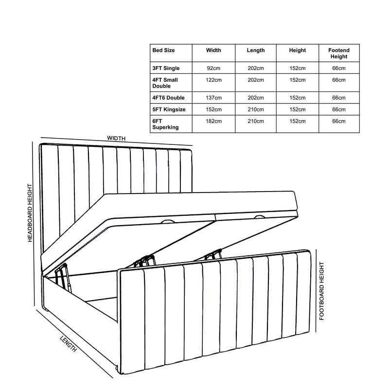 The tall matching foot end complements & completes the overall look of this on-trend ottoman storage bed frame.